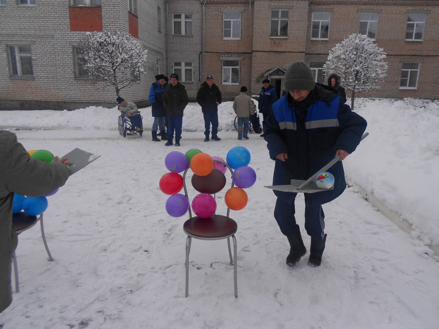 Спорт – это здоровье. А если заниматься спортом на свежем воздухе, то это еще лучше. Так подумали проживающие дома-интерната и с удовольствием пришли на уличную площадку, где прошла очередная эстафета под названием «Вперед, моя команда!». И действительно, на площадке царил командный дух. Это было 6 декабря. Снег не помешал эстафете, а наоборот придал праздничное настроение. Зрители поддерживали участников эстафеты криками «Вперед!», а участники тем временем старательно проходили все испытания. Каждый был награжден сладким подарком. А общее фото на память было завершающим моментом эстафеты.