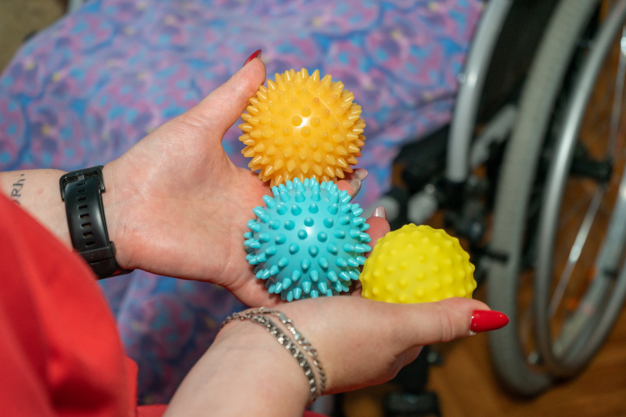 Одно из самых популярных упражнений в занятиях по развитию и восстановлению мелкой моторики — это упражнения с массажными мячиками!