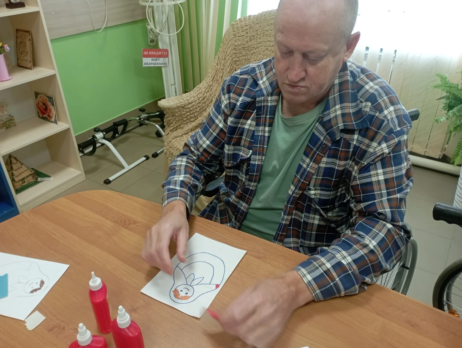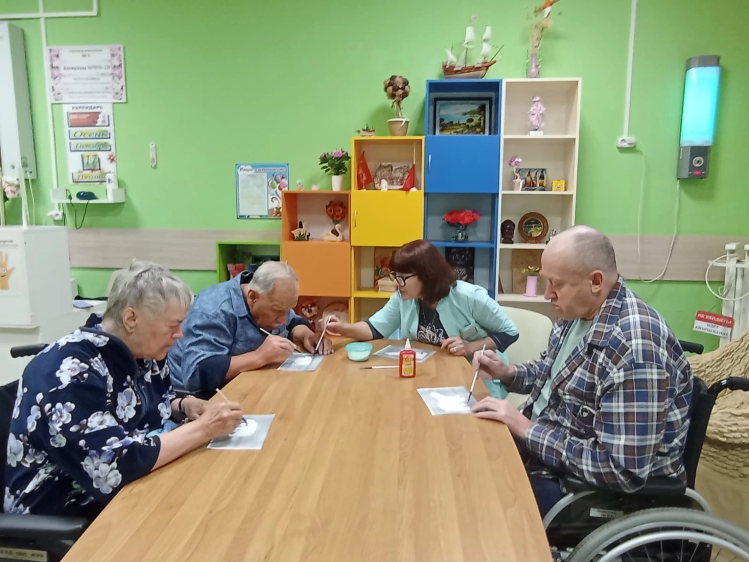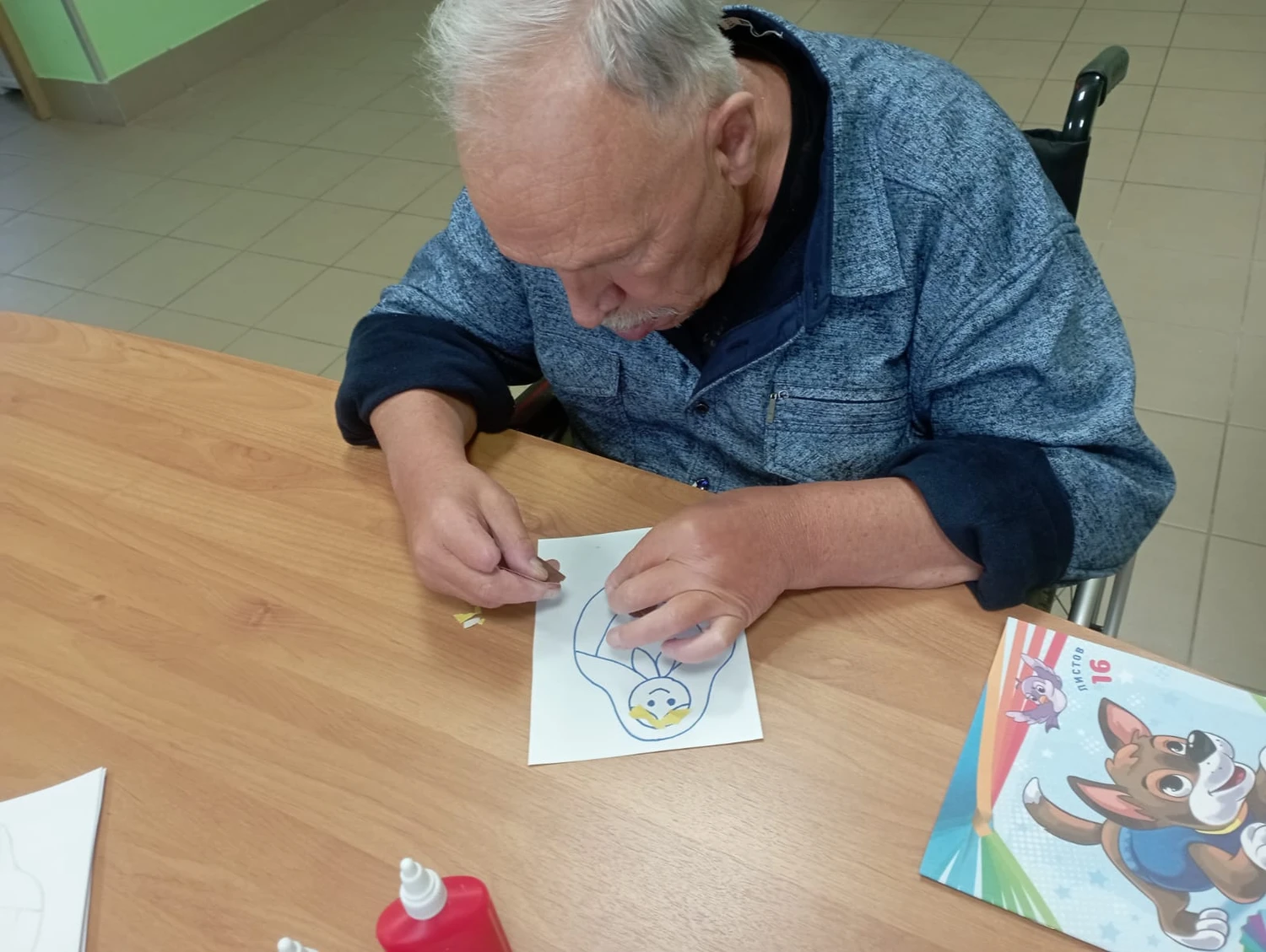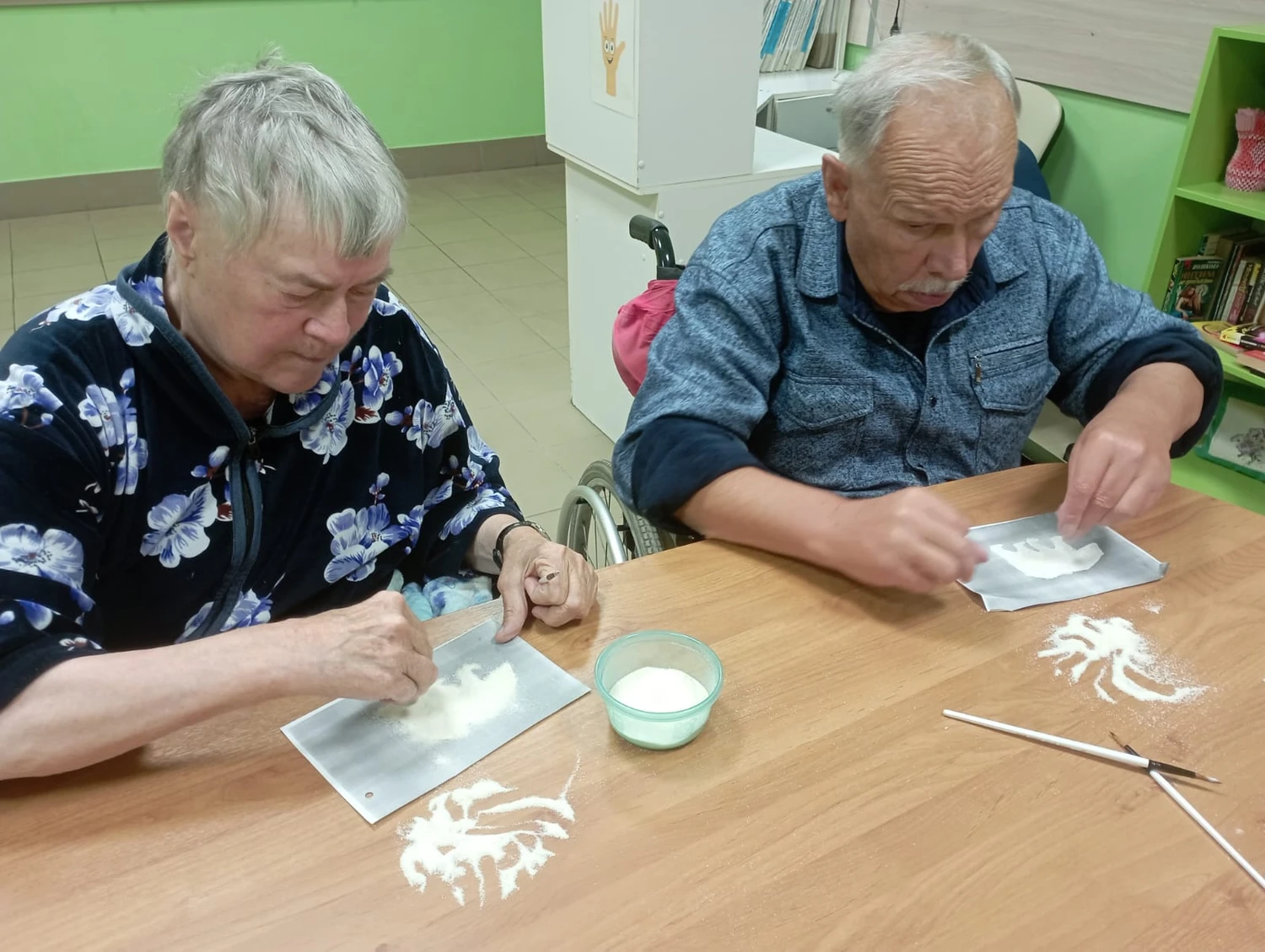 Продолжая учиться новому, наши проживающие на занятиях в клубе "Оч. умелые ручки" решили попробовать оригинальный способ рисования — манкой! На этом увлекательном занятии они создали удивительные картины с образом Белого медведя.