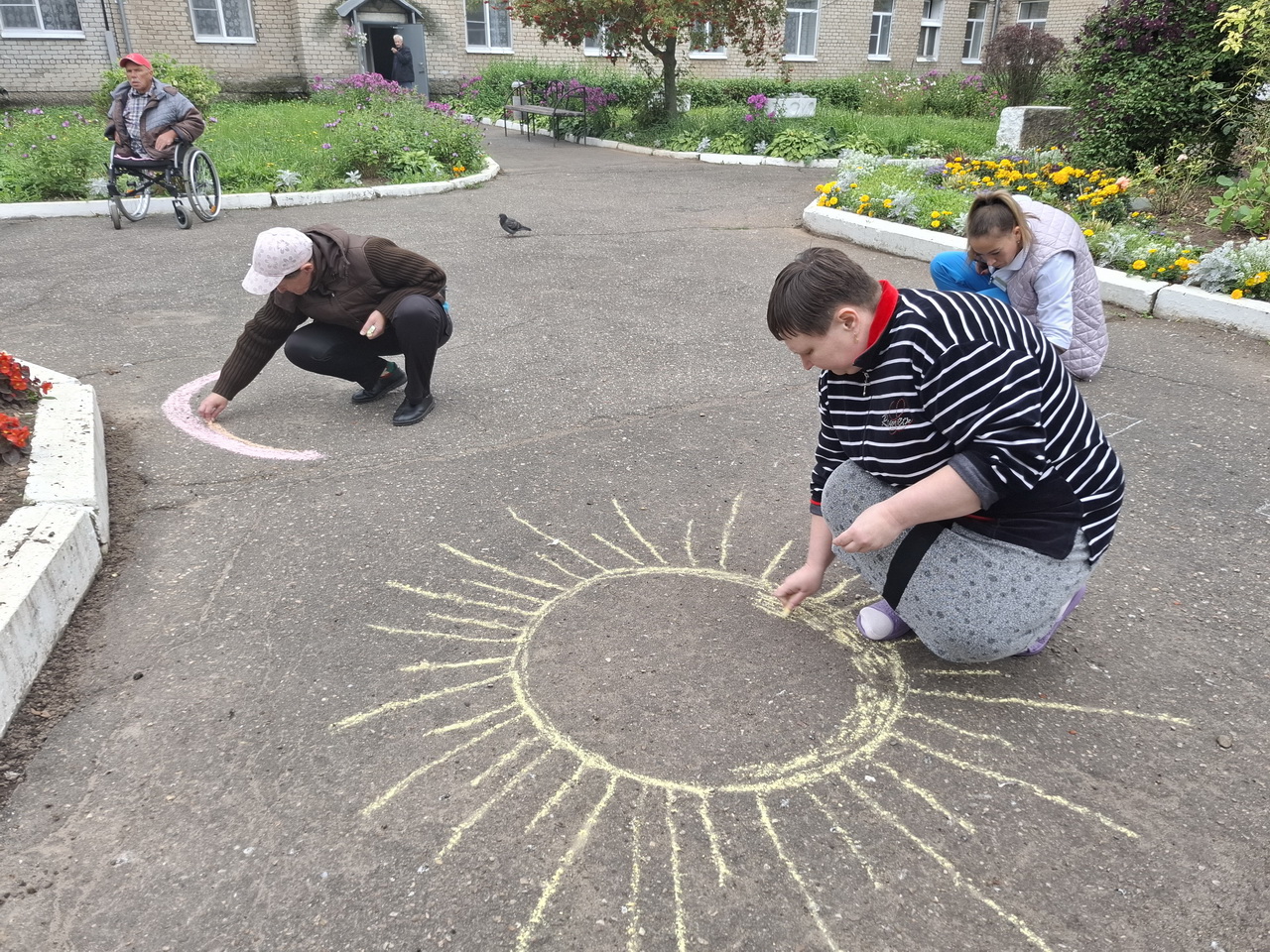 Сегодня у нас прошло замечательное занятие по рисованию мелками на асфальте! Проживающие рисовали яркие картинки на важную тему "Нет терроризму".